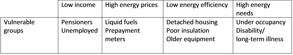 Table 1: Groups vulnerable to energy poverty in relation to drivers behind energy poverty